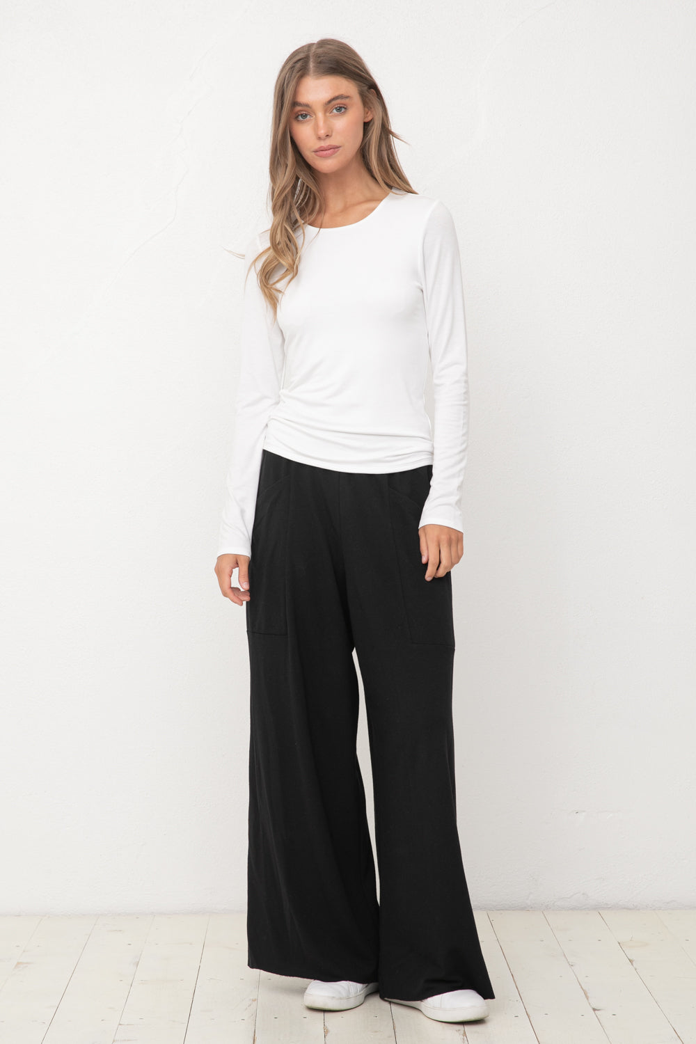 A timeless classic, this ivory double layered crew neck top is sure to become a wardrobe staple. Made from a spandex fabric that is not see-through, this basic piece offers luxe comfort and sophistication. Perfect for a night out or a day at work, this top is the perfect blend of style and practicality.